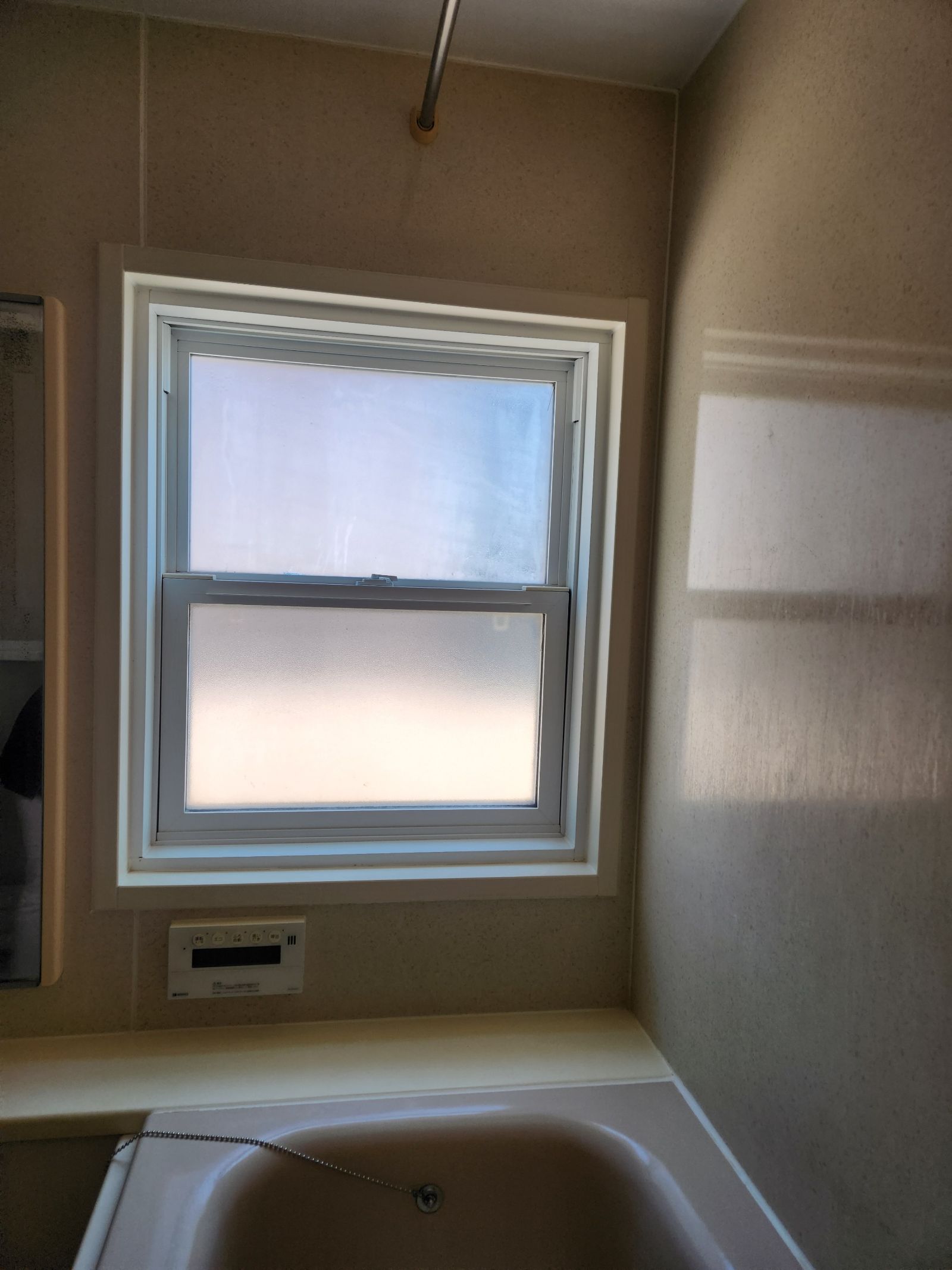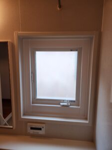 お風呂場の上げ下げ窓に不具合があり、サッシカバー工法にて交換しました。