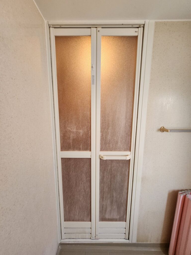 ユニットバスの折戸はパネルに割れがあったのですが、メーカー廃盤のため部品交換のみを行うことができずカバー工法で交換を行いました。