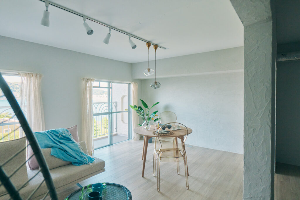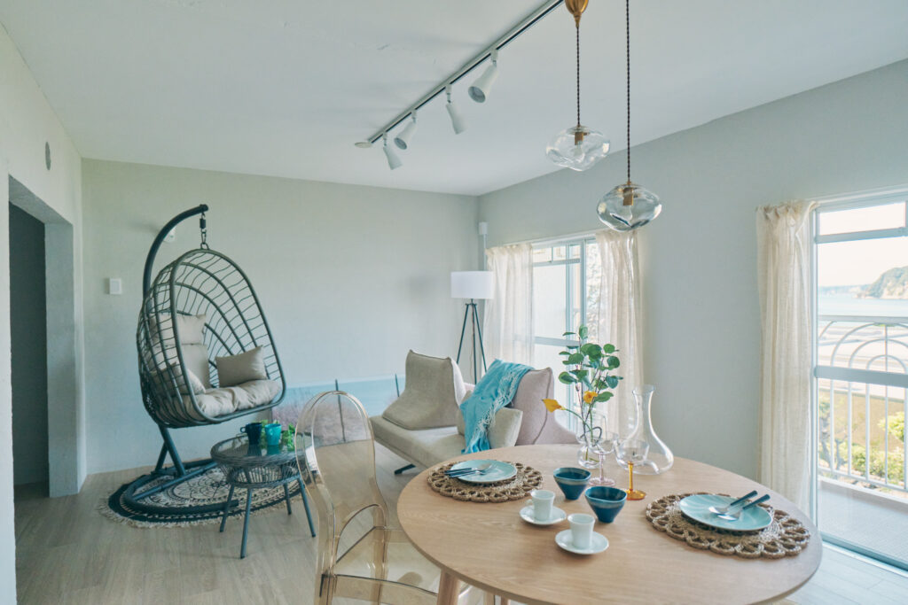 また弊社インテリアデザイナーによるステージングもさせてもらう事で海辺が似合う住み方を明確にイメージさせております。